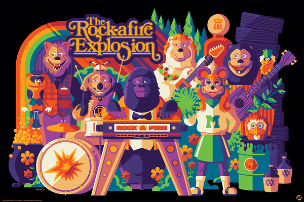 officially licensed screenprint for the nostalgic ROCK-A-FIRE EXPLOSION.• 36"x24" 10-color screenprint• from an artist proof edition of 40• signed by the artist